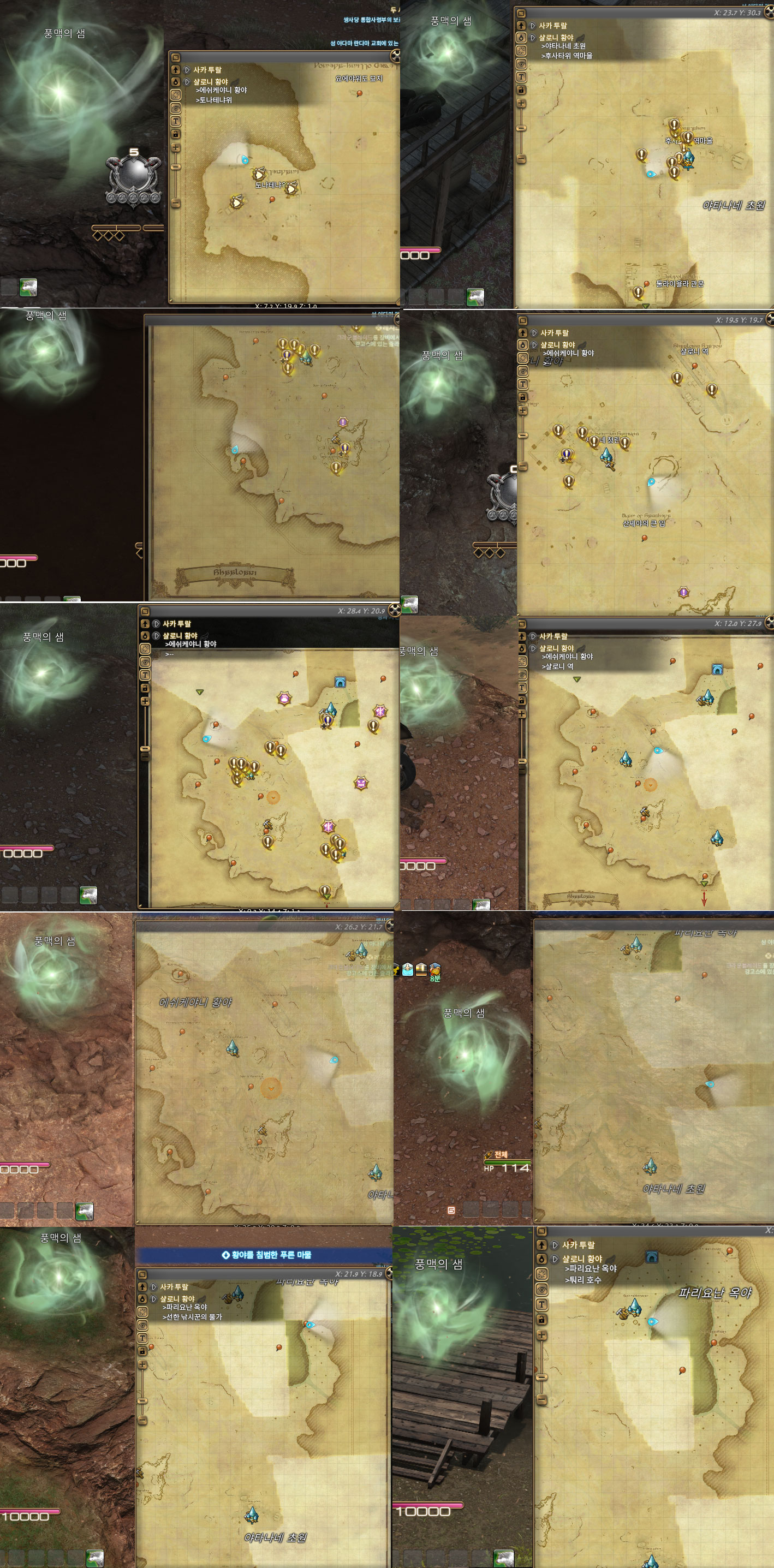연두색 네모쪽에서 풍맥퀘를 받으면 연두색 오른쪽으로 가라고 하니까 두번 동선 이동하지마시고 연두색 네모에서 풍맥퀘 받고 연두색 동그라미로 가서 풍맥퀘와 풍맥 둘다 한번에 찾으시면 편하다는 꿀팁 드리고 갑니다~